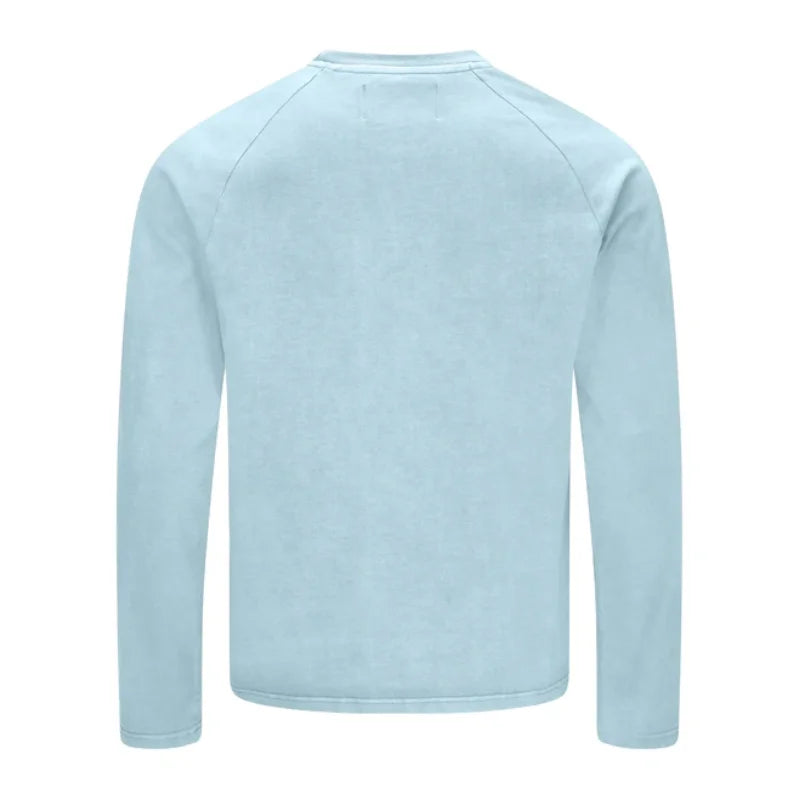 Our Baby Blue NOFS Basic Long Sleeve T-shirt is made for easy days and clean looks. Crafted from 100% cotton, it feels soft against the skin and breathes effortlessly. The regular, slightly cropped fit gives it a modern edge, while the subtle embroidery on the chest keeps things minimal but polished.