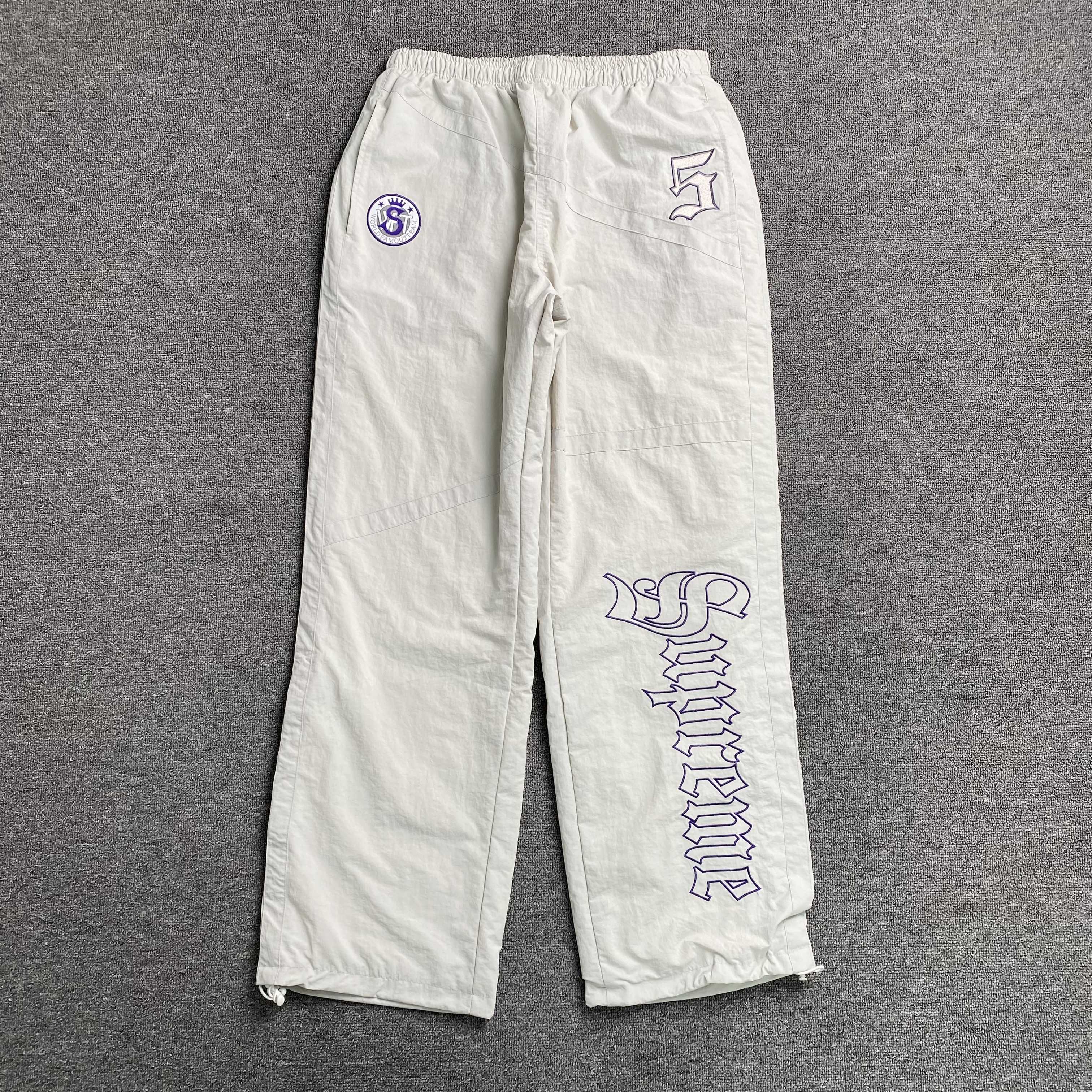 The Supreme Old English Track Pants in White are a premium streetwear staple, blending iconic branding with comfort and modern athletic style. Featuring the Old English logo, these track pants offer a versatile and stylish addition to any streetwear wardrobe.